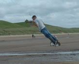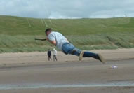 This jump does not quite achieve the level of air as the Sweep technique described above, however it is much easier to pull off stylish jumps because the pull is purely forwards. There is therefore no tendency for twisting in the air. {Ed - the level of jump betweeen the down-up jump and the sweep jump is up for discussion, as some reviewers have stated that the down-up jump actually gives them more air than the sweep jump. This is because they cannot brace themselves against the force of the kite sweeping through the power zone and therefore the jump seems to them to be weaker. It may be that this technique is better when used in conjunction with the pit (see below). If you have any views on this or anything on this site, then please post queries etc in our forum or drop us an email}
