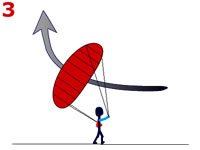 NB. The flight and landing is as the Sweep. The magnitude of the jump is controlled by how far down the window you reverse the kite, the further down the wind window equals bigger air.